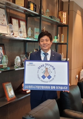 [충청뉴스큐] 청주시기업인협의회 김선겸 회장은 4일 정원커머스에서 코로나19 극복과 조기 종식을 기원하는 마음을 담아 “스테이 스트롱캠페인”에 동참했다.