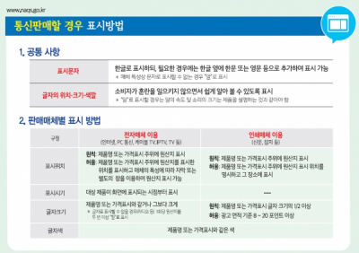 통신판매 원산지 표시는 한글로 하되, 소비자가 구매하는 시점에 원산지를 알 수 있도록 표시해야 한다.