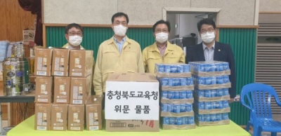 이재민 수용시설인 음성 삼성중학교도 방문해 현장을 점검하고 구호물품도 전달했다.