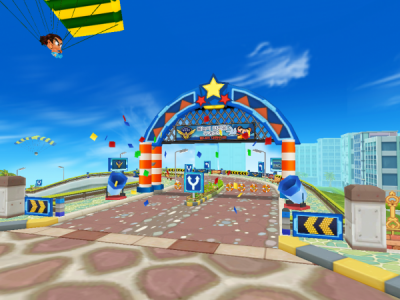 자동차 경주 게임 ‘카트라이더’ 세상 속 전광판에 ‘물놀이 안전은 구명조끼’, ‘물놀이 시작, 구명조끼’, ‘3분 이상 준비운동’ 등 안전수칙 이미지가 나온다.