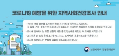 보건소 관계자는“조사 결과는 지역 맞춤형 건강정책을 개발하거나 보완하는데 사용되며 특히 코로나 19 관련 조사 결과는 국가 방역 대책 수립에 주요한 자료로 활용 될 예정이므로 다소 불편하시더라도 조사원 방문 시 적극적인 협조 및 참여를 부탁드린다”고 전했다.