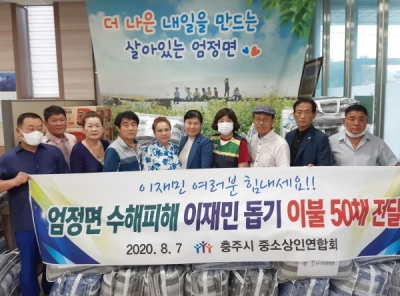 [충청뉴스큐] 충주시중소상인연합회는 지난 11일 엄정면행정복지센터를 찾아 집중호우로 큰 피해를 입은 주민들을 위한 이불 50채를 전달했다.