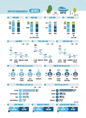 ‘2019 대구관광실태조사’는 대구시가 대구경북연구원에 의뢰해 2019년 1월부터 12월까지 계절별 특성을 반영해 1년간 실시했다.