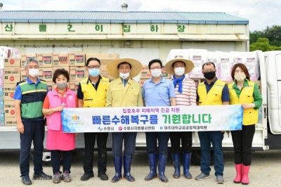 12일에는 염태영 시장과 김흥식 아주대 공공정책대학원장 등이 남원시 금지면 수해 피해지역을 방문해 이환주 남원시장에게 구호물품을 전달했다.