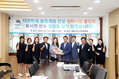 [충청뉴스큐] 평택시는 지난 12일 시청 대외협력실에서 평택시청 직장운동경기부 볼링팀 류서연 선수의 은퇴식을 열었다.