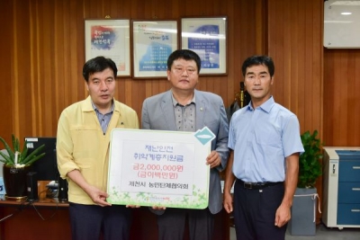 [충청뉴스큐] 제천시농민단체협의회는 13일 제천시청을 방문해 금번 집중호우로 인해 삶의 터전을 잃고 실의에 빠져있는 농가 및 이재민 가구의 피해복구를 위해 써 달라며 재난안전취약계층 지원금 200만원을 기탁했다.