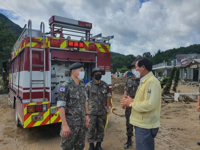 이날 고창준 보병37 사단장과 군 장병 20명, 여성예비군 15명이 동이면 적하리 침수 가옥정리를 도왔다.
