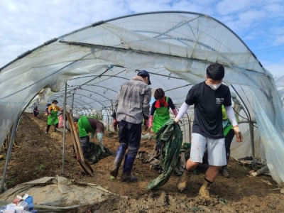 오송읍 호계리는 병천천 범람으로 애호박 비닐하우스 100여 동이 침수되는 등 피해가 발생해 50여 개 단체, 개인자원봉사자 등 500여명이 참여해 침수로 망가진 농작물과 부유물, 비닐 등을 치우며 지역 주민들의 어려움을 함께했다.