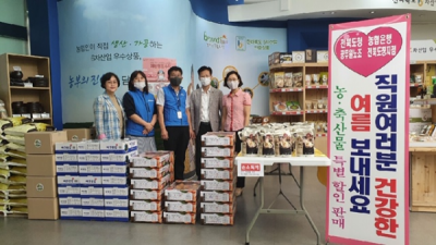 [충청뉴스큐] 전라북도공무원노동조합과 농협 도청지점은 특별할인 판매 협약으로 신선하고 안전한 우리 농축산물을 폭우와 코로나19 비상근무 등으로 지친 도청 공무원들과 도민들에게 저렴한 가격으로 제공하는 행사를 가졌다고 밝혔다.