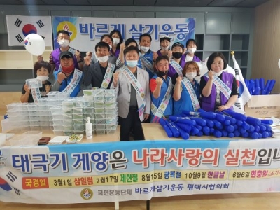 유승수 송탄동 바르게살기위원장은 “우리나라 태극기가 세계에서 가장 아름다운 10대 국기에 선정됐듯이 많은 뜻이 담겨있는 태극기를 더욱 소중하고 자랑스럽게 여기며 국경일마다 태극기 게양에 힘써주시기를 바란다”고 전했다.