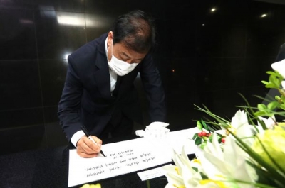이어 현충탑 뒤편 위패실에 들러 분향한 뒤 방명록에 ‘세계를 선도하는 새 시대 대한민국의 행복과 번영을 위한 디딤돌이 되겠습니다’라는 글귀를 남겼다.