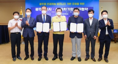 광주광역시는 18일 대신정보통신, ㈜스누아이랩과 광주형 인공지능 비즈니스 기반 조성을 위한 29~30번째 업무협약을 체결하고 산·학·연 협력을 통한 합작사를 설립해 광주 본사 및 연구소 개설을 통한 광주 인공지능 생태계 조성과 일자리 창출에 적극 협력키로 했다.