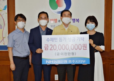 [충청뉴스큐]NH농협은행충주시지부가 18일 수재민 돕기 성금으로 2,000만원을 충주시에 기탁했다.