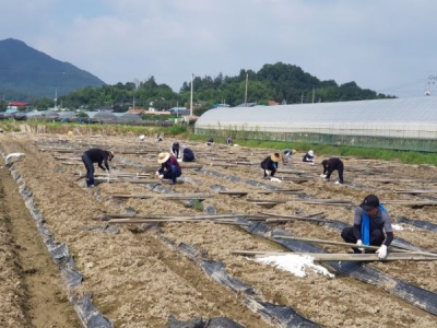갑작스럼 용담댐 방류로 하천이 범람해 농경지 침수로 피해가 큰 옥천군 동이면 적하리 인삼밭 일대를 찾아 인삼분류 및 그늘막 정리 등 주변 환경을 정비하며 신속한 복구활동에 힘을 보탰다.