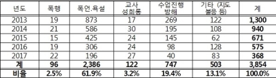 [충청뉴스큐] 지난 5년간 학생에 의한 교권침해가 증가하고, 폭행과 교사 성희롱 등의 비율이 늘고 있으나 관련 조치는 피해자인 교원이 감당하고 있어 피해 교원에 대한 심층 상담 지원과 제도 개선이 절실한 것으로 나타났다.