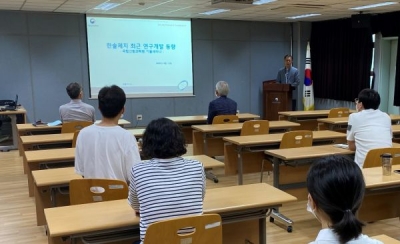 이번 세미나는 종합 제지업체인 한솔제지 서동준 수석연구원의 발표로 진행됐으며 최근 한솔제지에서 추진하는 고차단성 배리어층 형성기술 기반 연포장재 나노셀룰로오스 대량생산 기술 및 복합소재 응용 등 펄프·종이의 소재화를 위한 연구개발 사례를 공유했다.