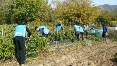 직원들은 함께하는 즐거움을 몸소 실천하며 가을철 부족한 농촌 일손 돕기 활동에 나섰다.