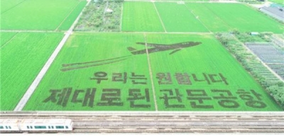 강서구 대저1동 일원에 조성된 이번 논 그림은 “우리는 원한다 제대로 된 관문공항”이라는 문구와 함께 비행기가 날아오르는 모습을 역동적으로 표현해 관문공항 건설을 기원하는 시민들의 염원을 담아냈다.
