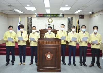 [충청뉴스큐] 옥천군의회에서는 21일 의회 본회의장에서 코로나19 확산방지와 우리지역 위기 극복을 위한 대군민 호소문을 발표했다.