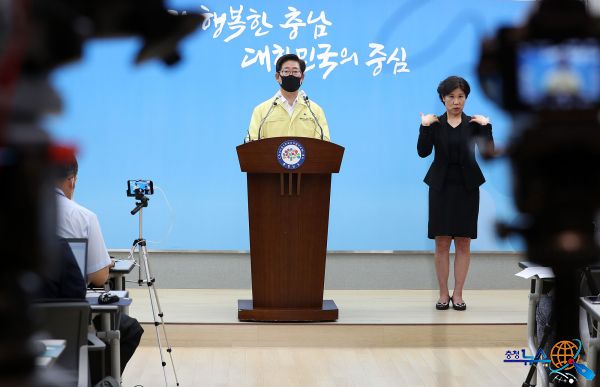 양승조 지사는 지난21일 기자회견을 갖고 “서울을 중심으로 코로나19 신규 확진자가 1주일 째 세 자리 수를 기록하고 있으며, 지난 1주일 간 도내에서 발생한 38명의 신규 확진자 중 24명이 수도권발 감염”이라며 “급속 확산 우려에 따라 사회적 거리두기 2단계에 준하는 방역 관리 강화 조치를 21일부터 실시토록 하겠다”고 밝혔다.