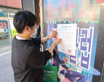 옥천군은 관내 유흥시설, 노래연습장, PC방, 뷔페 등 고위험시설에 대한 집합금지 조치를 통보하고 24일 해당 시설 55개소에 행정명령 안내문을 부착 완료했다.