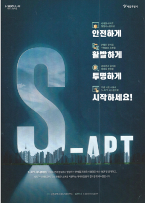 ‘S-APT’는 3S(Seoul(서울) Smart(스마트) Safety(안전))를 의미하며 4가지 핵심기능으로 구성된다. 입주민, 입주자대표회의, 관리주체가 사용하는 아파트 전용 전자결재 시스템 전자문서 공개시스템 지자체-아파트 단지 간 문서 수·발신을 위한 문서유통 시스템 긴급재난상황의 신속한 전파와 안내방송을 위한 상황전파 시스템이다.