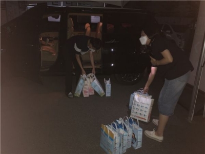 [충청뉴스큐] 청주시 보건소가 코로나19 확진자와의 접촉으로 자가격리 중인 대상자들에게 야간에도 구호물품을 전달하고 있다.