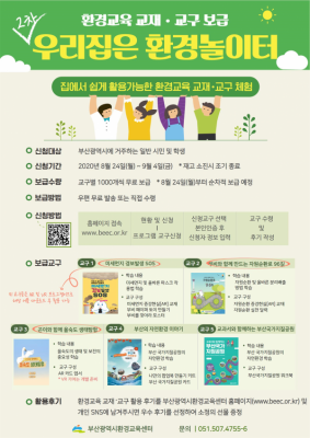 [충청뉴스큐] 부산시가 코로나19 지역사회 확산으로 ‘집콕’하는 시간이 많아진 학생들을 위해 환경교육 교재·교구를 무료로 보급한다고 밝혔다.