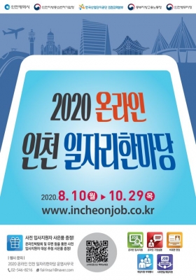 인천광역시와 인천지방중소벤처기업청, 한국산업단지공단 인천지역본부, 중부지방고용노동청, 인천병무지청이 공동개최하는 ‘2020 온라인 인천 일자리한마당’이 채용인원 160명을 목표로 8월28일부터 10월29일까지 온라인 상에서 개최된다.