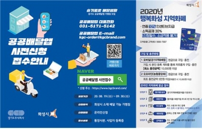 공공배달앱 입점은 화성시 관내 배달이 가능한 음식점이면 모두 참여 가능하며 사업자등록증, 통장사본 등을 준비해 다음달 30일까지 경기도주식회사 홈페이지에서 신청하면 된다.