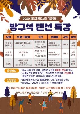 [충청뉴스큐] 평택시립지산초록도서관은 가을을 맞아 집에서 즐길 수 있는 성인대상 비대면 강좌를 운영할 예정이다.