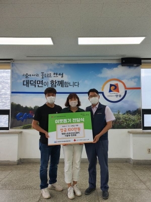 [충청뉴스큐] 대덕면 소재 청춘노인주간보호센터에서 코로나19 극복을 위해 성금 100만원을 대덕면사무소에 기탁했다.