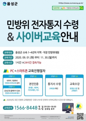 군 관계자는 “코로나19 확산을 최소화함과 동시에 민방위교육의 의무사항을 이행하고자 사이버교육으로 대체 실시한다”며 “모든 민방위 대원들의 적극적인 참여와 협조를 바란다”고 말했다.