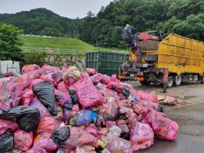 8월 26일부터 회원들은 제천 자원관리센터 지원에 나서 무더위와 악취 속에서 집게차를 동원해 생활폐기물 적환장 상차 작업과 함께 침수지역에서 수거한 혼합 쓰레기에 대한 선별작업을 펼치고 있으며 수해복구과정에서 발생하는 다량의 수해폐기물의 신속한 처리에 많은 도움을 주고 있다.