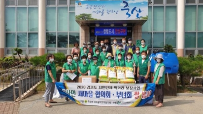 이날 각 마을 부녀회장과 새마을지도자 협의회 임원들이 참석해 쌀 20kg 70포와 마스크 3500장을 수해·코로나19·무더위로 어려움을 겪고 있는 취약가구와 어르신들에게 직접 전달했다.