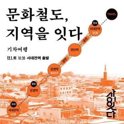 대전시는 오는 12월 1일 2018. 문화가 있는 날 지역특화사업 ‘사絲, 이異 잇다’의 마지막 프로그램으로, 철도로 인해 희비가 엇갈렸던 두 지역 대전과 강경을 잇는 기차여행‘문화철도, 지역을 잇다’를 개최한다고 8일 밝혔다.