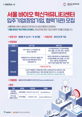 한편 서울시는 바이오 혁신커뮤니티센터 외에도 경희대학교 구 이과대학 시설을 임차해 ‘서울 바이오 산학협력센터’를 연내 조성할 계획이며 서울 바이오 산학협력센터 입주기업 모집은 10월에 진행한다.