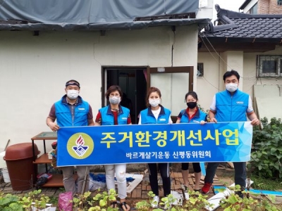 이날 행사에는 바르게살기운동 신평동위원회 임원 및 회원 10여명이 참여해 싱크대뿐만 아니라 기타 낡은 가구들을 교체하고 집 안팎의 대청소를 실시했다으로써 주거환경의 노후하고 열악한 위생상태로 고통 받던 수혜자를 웃음 짓게 했다.