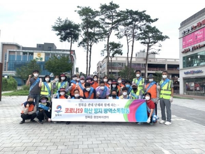 [충청뉴스큐] 평택시 청북읍 행정복지센터는 코로나19 사태가 확산됨에 따라 지난 8월 31일 9월 1일 양일간 직원 및 단체회원 82명과 함께 옥길리 상가 전지역의 카페, 음식점, 마트, 은행ATM기, 육교, 놀이터 등에 방역 소독을 실시했다.