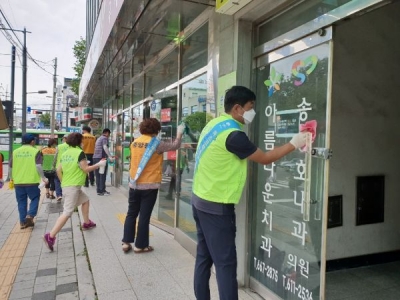 주민자치위원회, 자율방범대, 새마을지도자, 청소년지도협의회 등 회원은 서정리역과 서정리역 인근 상가 및 버스승강장 등 다중이용시설에서 사람들의 손길이 많이 닿는 문과 손잡이, 출입구 등을 중점적으로 소독했다.