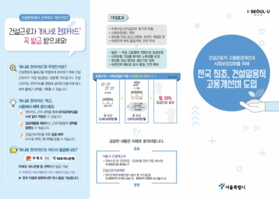 서울시는 건설현장의 열악한 고용구조와 노동환경 개선을 위한 ‘건설일자리 혁신’을 통해 시 발주 공공공사 건설노동자가 주 5일을 근무하면 하루치 임금에 해당하는 ‘주휴수당’을 지급하겠다고 발표한 바 있다.