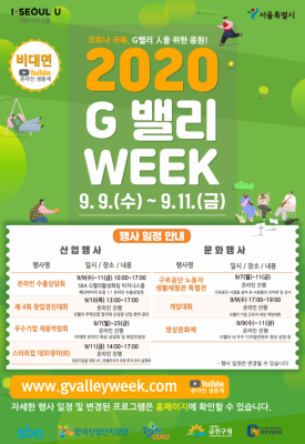 [충청뉴스큐] 서울시는 1만 1천여개 기업이 둥지를 틀고 15만명의 근로자가 근무 중인 G밸리의 대표 축제 ‘G밸리 위크(Week)’를 9월 9일(수)부터 9월 11일(금)까지 3일간 비대면(온라인)으로 개최한다고 밝혔다.