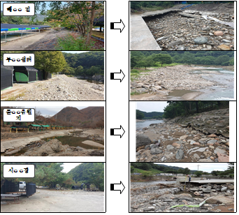 더욱이 호우에 떠내려 온 시설물은 교량 등에 걸려 제방 및 호안 등 하천구조물의 안정성 저하와 함께 월류현상을 발생시켜 인근 주택·농경지 등에 2차 피해를 입힐 가능성이 매우 높다.