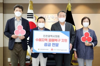 [충청뉴스큐] 인천광역시의회는 9월 3일 집중호우 피해복구 지원을 위해 자율적으로 모금한 성금을 인천사회복지공동모금회에 전달했다고 밝혔다.
