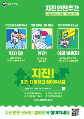 안영규 행정안전부 재난관리실장은 “지진은 예고 없이 찾아오는 재난으로 지진 안전 주간에 실시하는 온라인 행사를 통해 지진안전 상식을 사전에 충분히 숙지할 수 있는 기회가 되길 바란다”고 말했다.