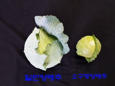 소규형양배추는 무게가 0.8~1.2kg으로 기존 양배추 3~4kg 보다 무게와 크기가 1/4 수준이나 당도가 높고 잎이 얇아서 생식과 샐러드용으로 인기가 높다.