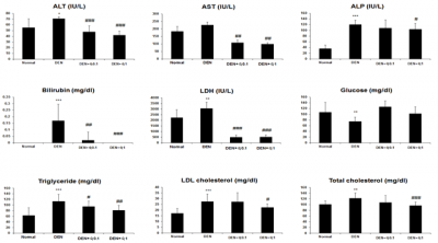 간염과 관련해 대표적인 염증 물질인 TNF-α가 62% 줄고, 간의 손상 여부와 정도를 판단하는 인자인 CYP2E1이 97%, ALT가 41%, AST가 56%, 빌리루빈이 100%, LDH가 83% 줄었다.