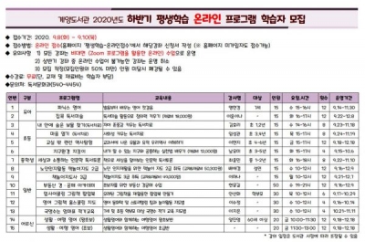 [충청뉴스큐] 인천시교육청계양도서관은 ‘2020년 하반기 온라인 평생학습프로그램’을 수강생을 모집한다.