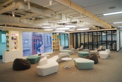 인천 송도 IBS타워 23층에 자리 잡은 지원센터는 총 292.5평의 공간에 입주기업 사무실 12개실 50명 수용 가능한 컨퍼런스룸 중소 회의실 2개실 컨설팅룸 및 20석 규모의 공유오피스 1인 크리에이터 스튜디오 등으로 조성됐다.