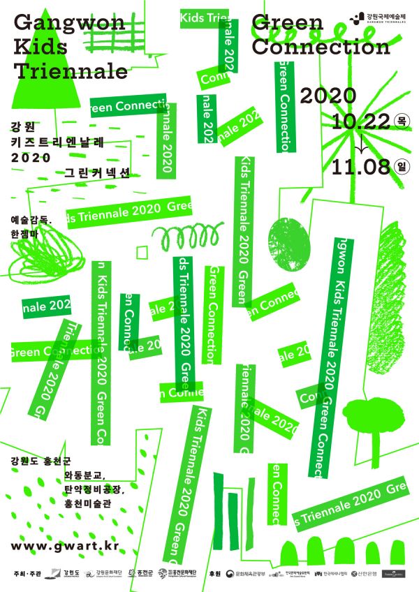 어린이 시각예술축제라는 강원키즈트리엔날레의 정체성이 강조된 공식 포스터에는 전시 주제인‘그린커넥션의 의미가 담겼다.
